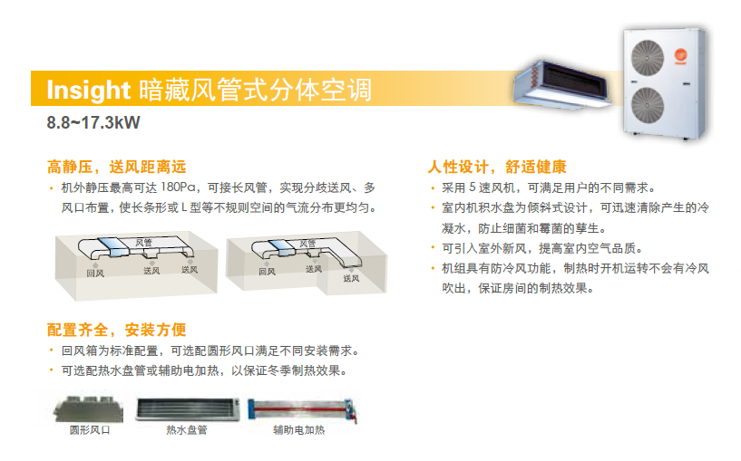 ◇ 可选配辅助电加热,以保证冬季制热效果。