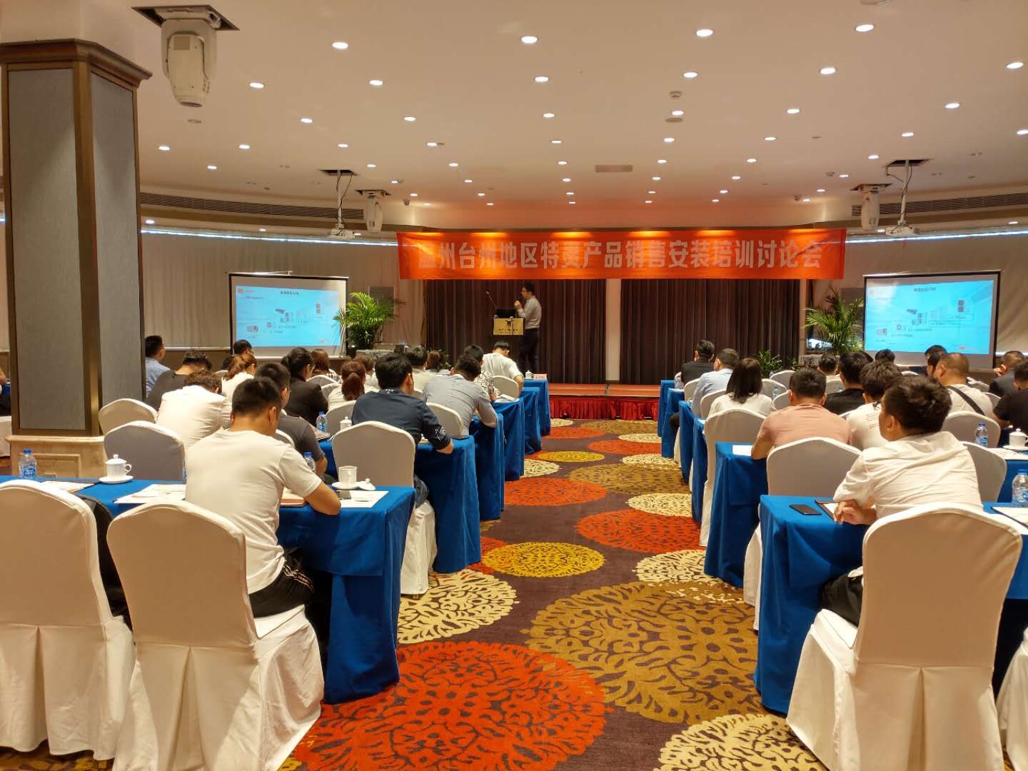 公司温台地区特灵产品销售安装培训会于4月25日在温州王朝大酒店顺利召开。本次会议有幸邀请到了厂家主讲嘉宾产品技术经理王浚屹、售后经理周虹江等。现场与会经销商代表近80人。全天的会议就特灵品牌及产品介绍、品牌优势及销售技巧、售后安装及注意事项、调试流程等板块内容进行了专业详细地讲解。两家经销商代表杭州悦居尹总、温州享家陈总分别分享了新三恒系统与静音冷暖辐射系统。为温台地区经销商伙伴思考差异化销售提供一定的参考。